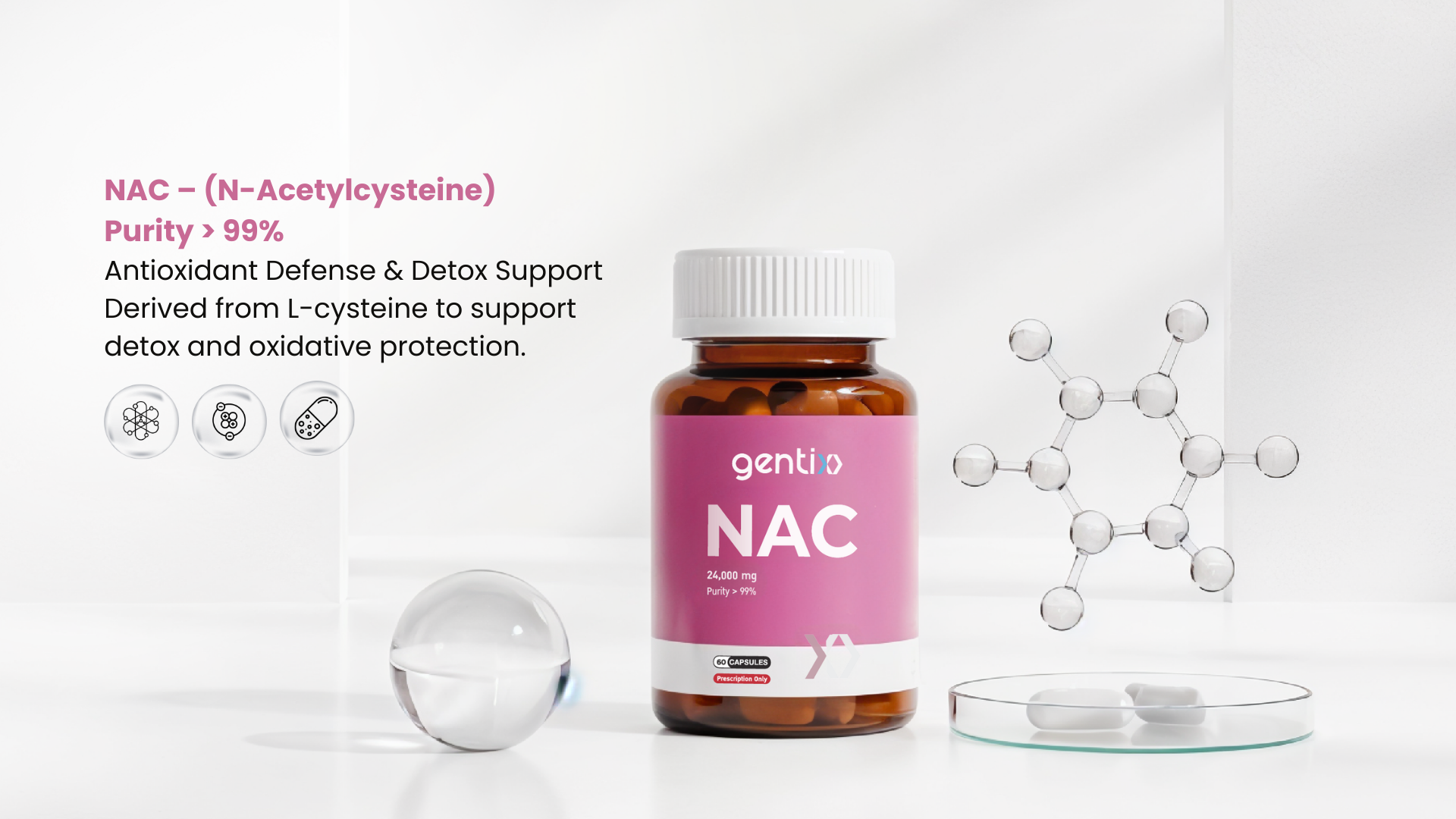 NAC – Antioxidant Defense & Detox Support Derived from L-cysteine to support detox and oxidative protection.NAC – (N-Acetylcysteine)