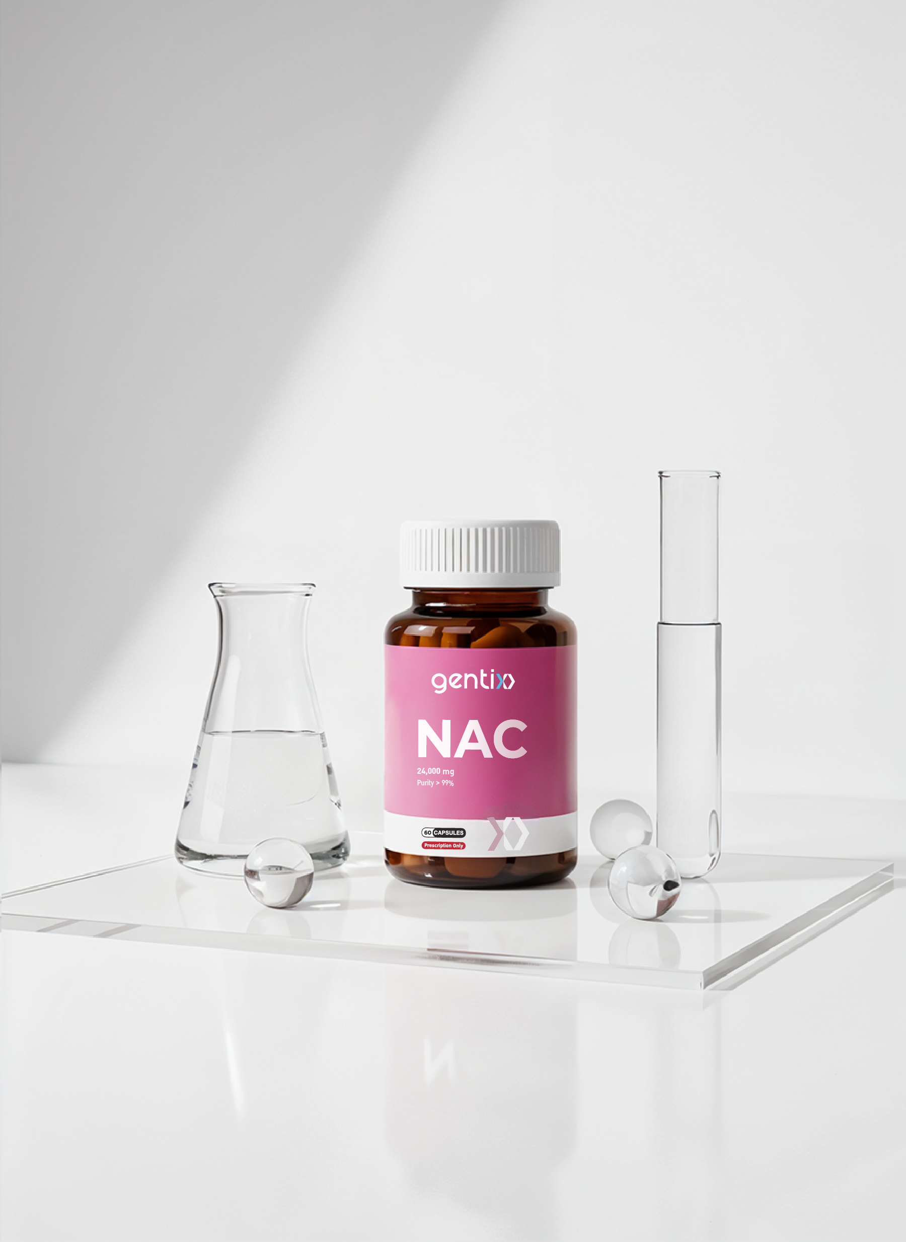 Helps manage oxidative stress that may occur from increased cellular activity stimulated by NMN. NAC supports antioxidant defenses, helping protect cells from excess oxidative damage while energy production is enhanced.